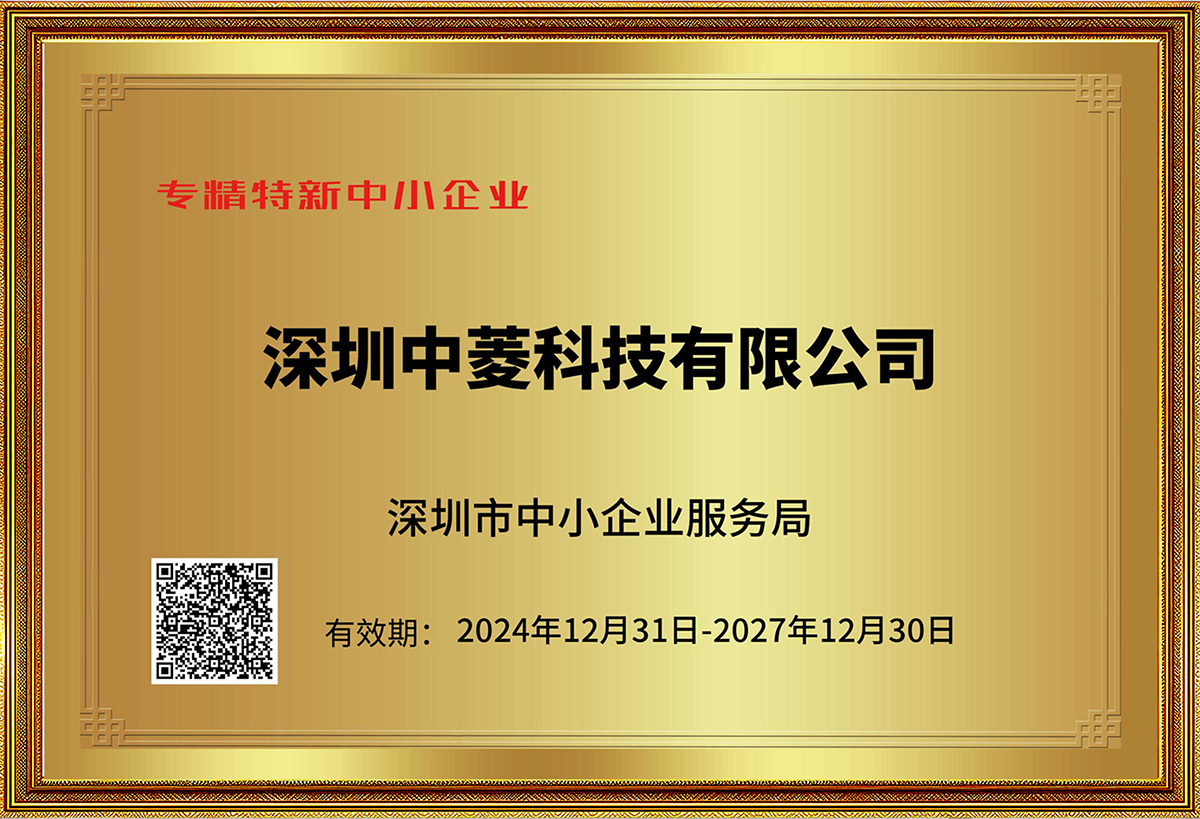 近日,中菱科技收到深圳市中小企业服务局正式下发的专精特新中小企业证书。
