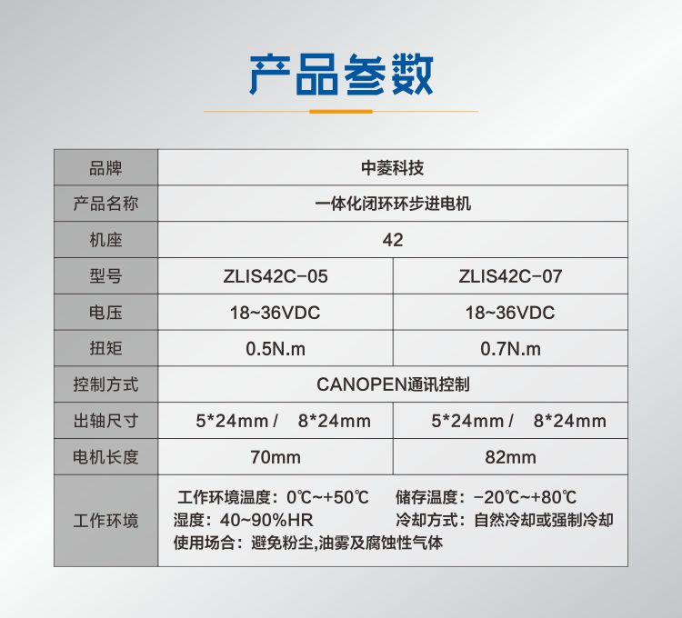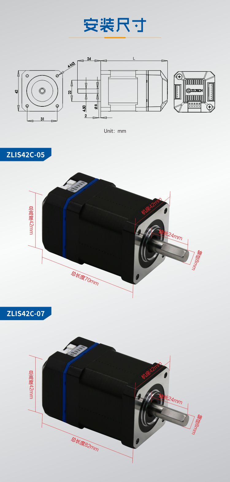 ZLIS42-C 为高性能数字式集成驱动一体的两相混合式闭环电机,系统结构简单,集成度高,增加了总线通讯及单轴控制器功能。总线通讯采用 CAN总线接口,协议上支持 CANopen 协议的 CiA301 及 CiA402 子协议。