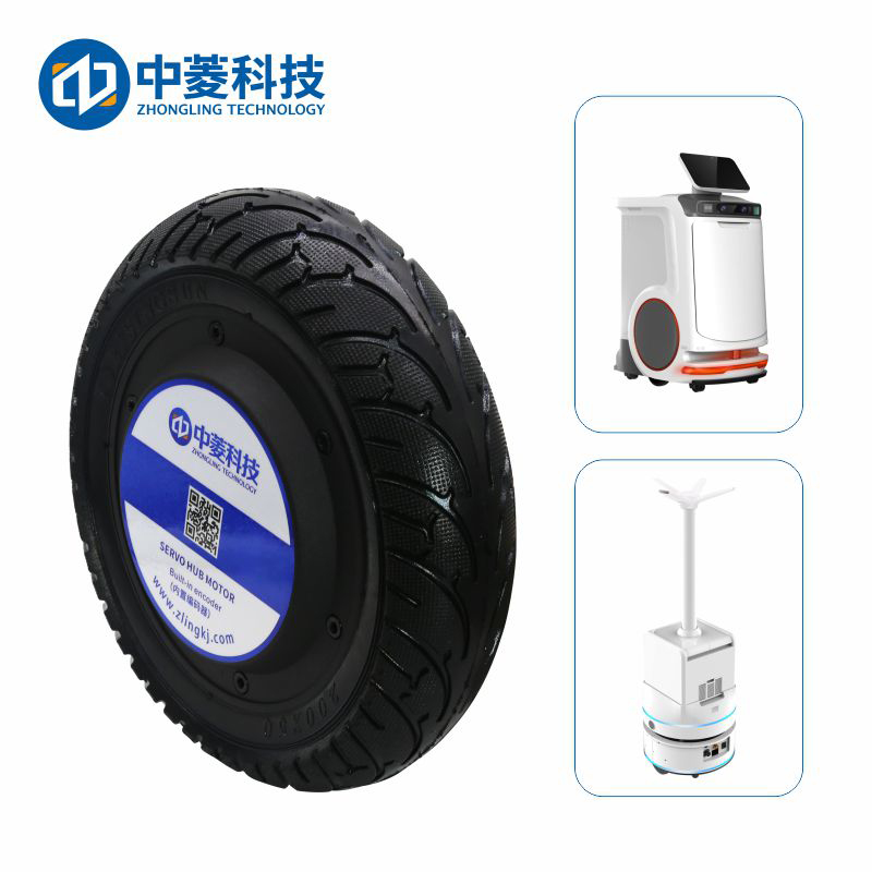机器人轮毂电机是一种新型结构的轮毂电机,基本组成结构为:定子+编码器+轴+磁铁+钢圈+盖子+轮胎。