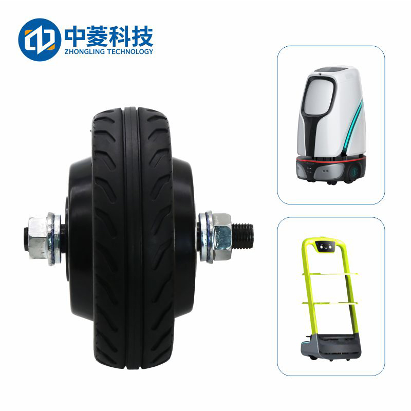机器人轮毂电机是一种新型结构的轮毂电机,基本组成结构为:定子+编码器+轴+磁铁+钢圈+盖子+轮胎。