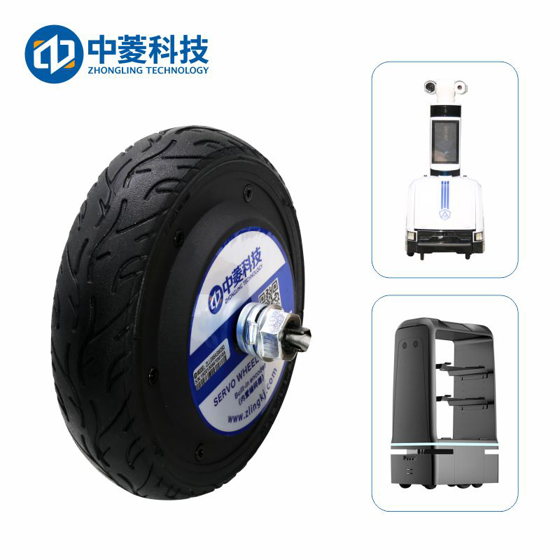 机器人轮毂电机是一种新型结构的轮毂电机,基本组成结构为:定子+编码器+轴+磁铁+钢圈+盖子+轮胎。