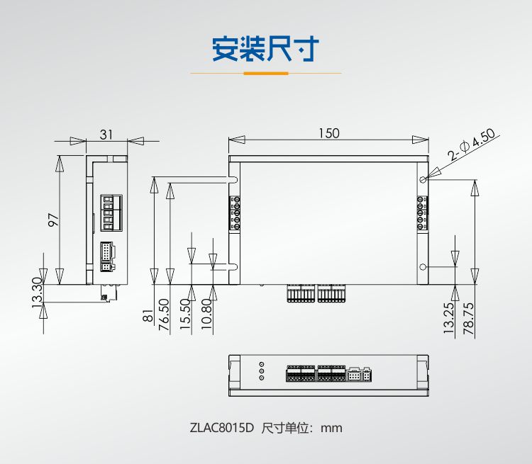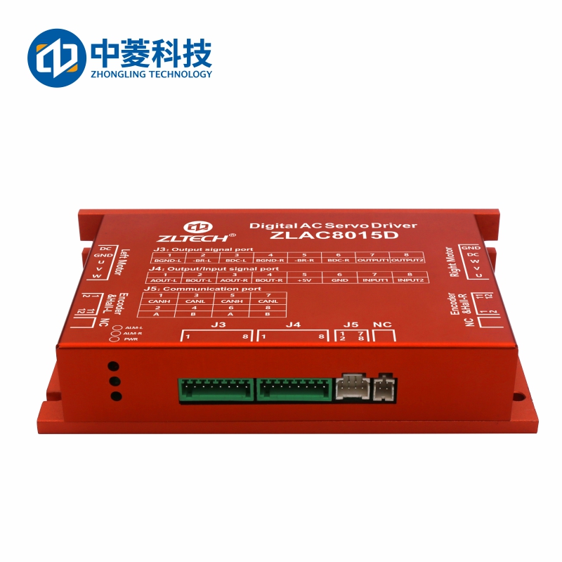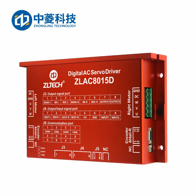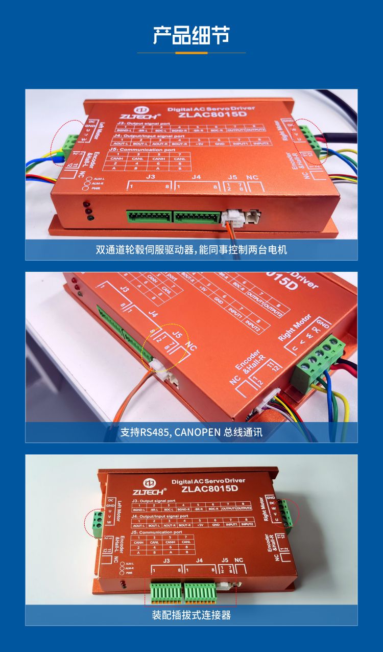 ZLAC8015D为高性能数字式伺服双轮毂电机驱动器,系统结构简单,集成度高,集成了485和CAN总线通讯及单轴控制器功能。