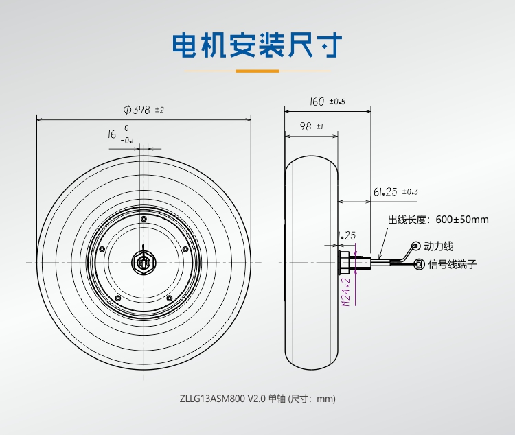 • Zhongling Technology ZLLG16ASM800 V2.0 16 inch outdoor robot servo wheel hub motor DC driver with built-in encoder