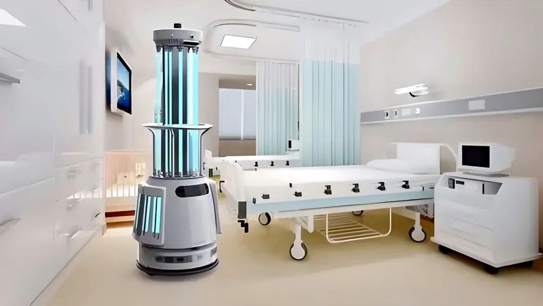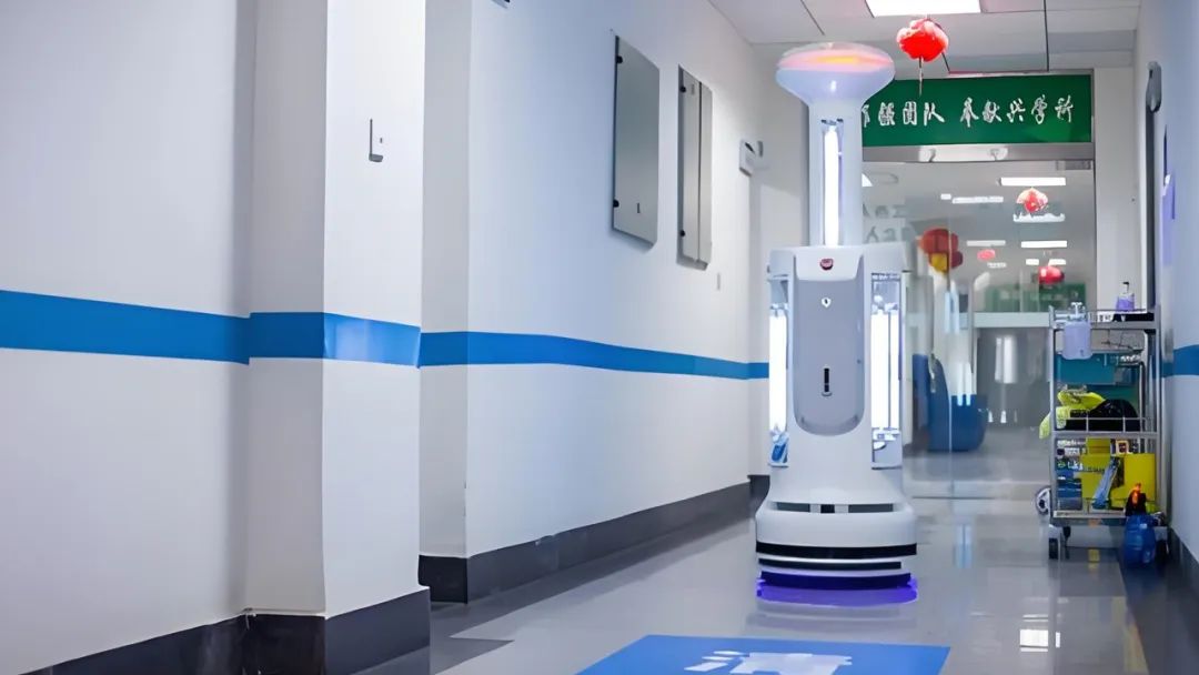 消毒防疫机器人简称消毒机器人,机器人为载体,在机器人内部装置消毒系统,有雾化消毒机器人、紫外线消毒机器人、等离子消毒机器人、强光脉冲消毒机器人等。其中雾化消毒机器人应用最为普遍,雾化消毒机器人是将消毒雾化,产生消毒气体,利用机器人的气动系统将消毒气体快速的在室内空间扩散,增加消毒的覆盖面和均匀性,能有效、无死角地杀灭空气中的致病微生物,消毒机器人能够根据设定的路线自动、高效、精准的对室内进行消毒防疫。特点是:无需人员接触,防止人员杀毒二次感染;机器人配备智能识别和避障系统,能在人流较大的环境杀毒,同时不影响行人;运行速度快;可24小时消杀。