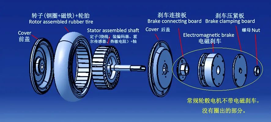 轮毂电机,也被称为无刷外转子轮毂电机,是机器人运动的核心执行机构,具有响应速度快、转动惯量小、过载转矩大、转矩波动小、高效率和低速稳定等有点。其特性主要由定子、转子和附加件组成,与内转子电机不同的是,轮毂电机的转子由众多的强磁铁围绕轮毂的外圆构成,而定子铁心一般由带绝缘层的硅钢片制成,用于放置定子绕组,定子绕组以相同的角度分布在圆心上,也就是各自呈120度角,绕组上的线圈按一定规律缠绕,定子绕组流过电流产生旋转磁场。此时旋转磁场与转子导体有相对切割运动,根据电磁感应原理,转子导体产生感应电动势并产生感应电流,转子导体在磁场中受到电磁力作用,形成电磁转矩,驱动转子旋转。通俗来讲,就是将电流的电能转换为机械能的过程。
