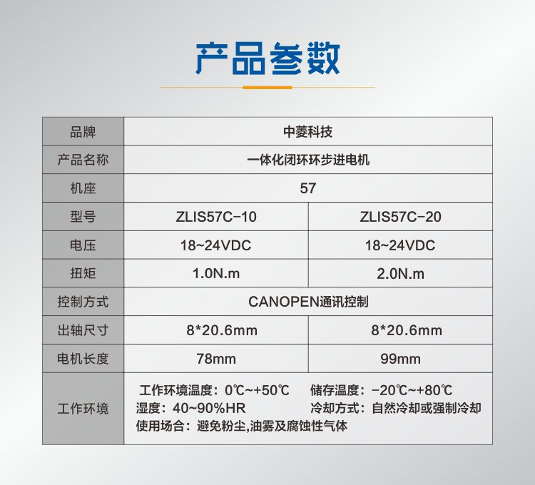 ZLIS57-C 为高性能数字式集成驱动一体的两相混合式闭环电机,系统结构简单,集成度高,增加了总线通讯及单轴控制器功能。总线通讯采用 CAN总线接口,协议上支持 CANopen 协议的 CiA301 及 CiA402 子协议。