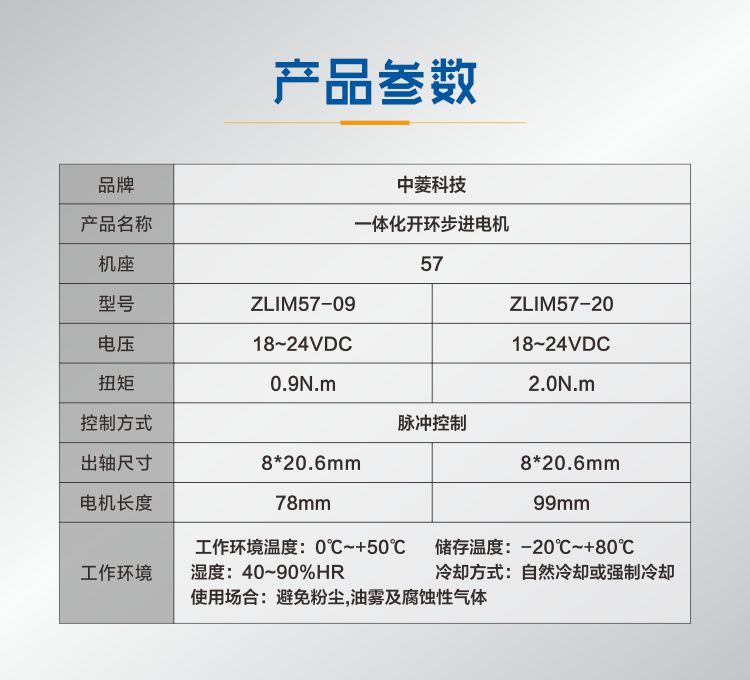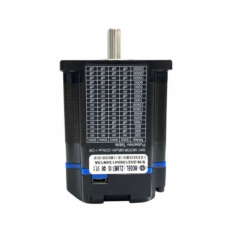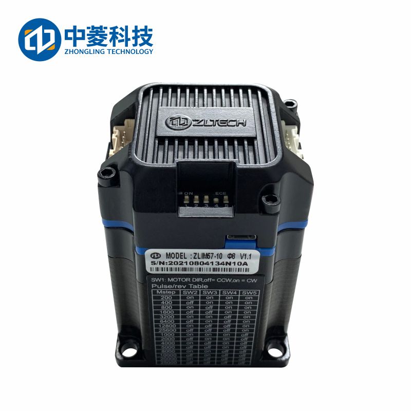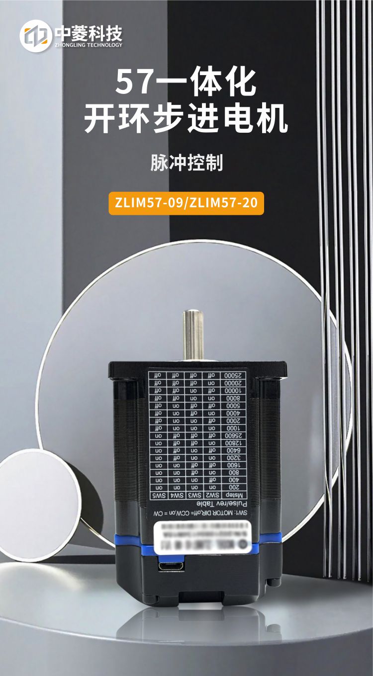 ZLIM57-P 为高性能数字式集成驱动一体的两相混合式开环电机,系统结构简单,集成度高。该系列集成式开环步进电机采用了最新 32 位电机控制专用DSP 芯片,并运用先进的数字滤波控制技术、谐振振动抑制技术和精密电流控制技术,使两相混合式步进电机实现精准平稳运行。该系列集成式开环步进电机具有大力矩输出、低噪音、低振动、低发热的特点,特别适合于电子加工设备、激光加工、医疗和小型数控设备。