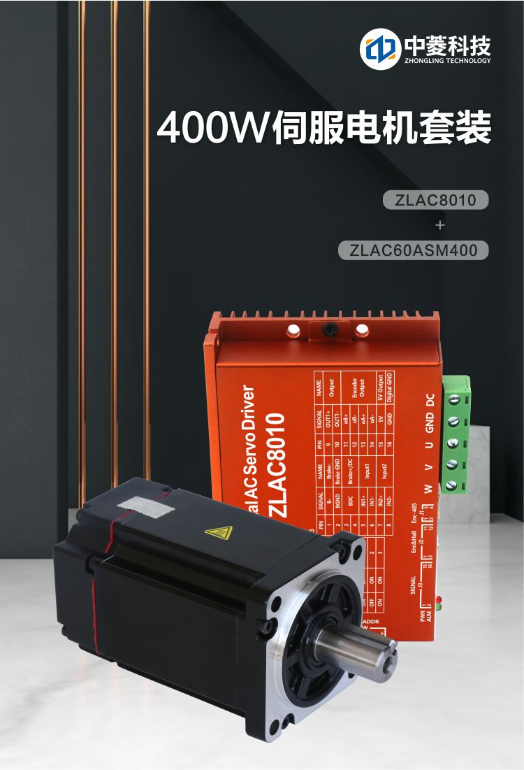 中菱科技ZLAC60ASM400 400W直流无刷伺服电机60法兰8010驱动器套装内置编码器