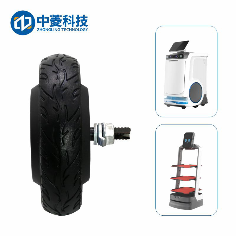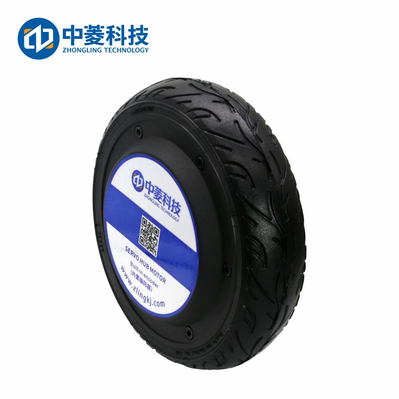 机器人轮毂电机是一种新型结构的轮毂电机,基本组成结构为:定子+编码器+轴+磁铁+钢圈+盖子+轮胎。