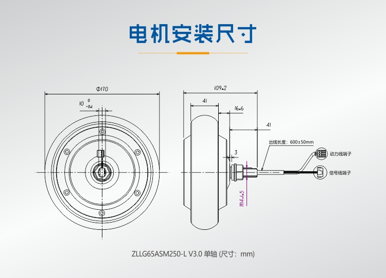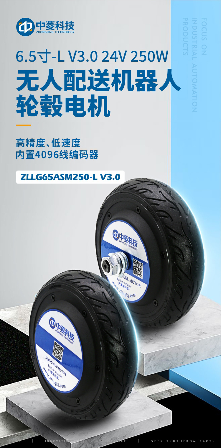 • 中菱科技ZLLG65ASM250-L V3.0 6.5寸-L直流无刷服务机器人内置编码器双轴轮毂伺服电机
