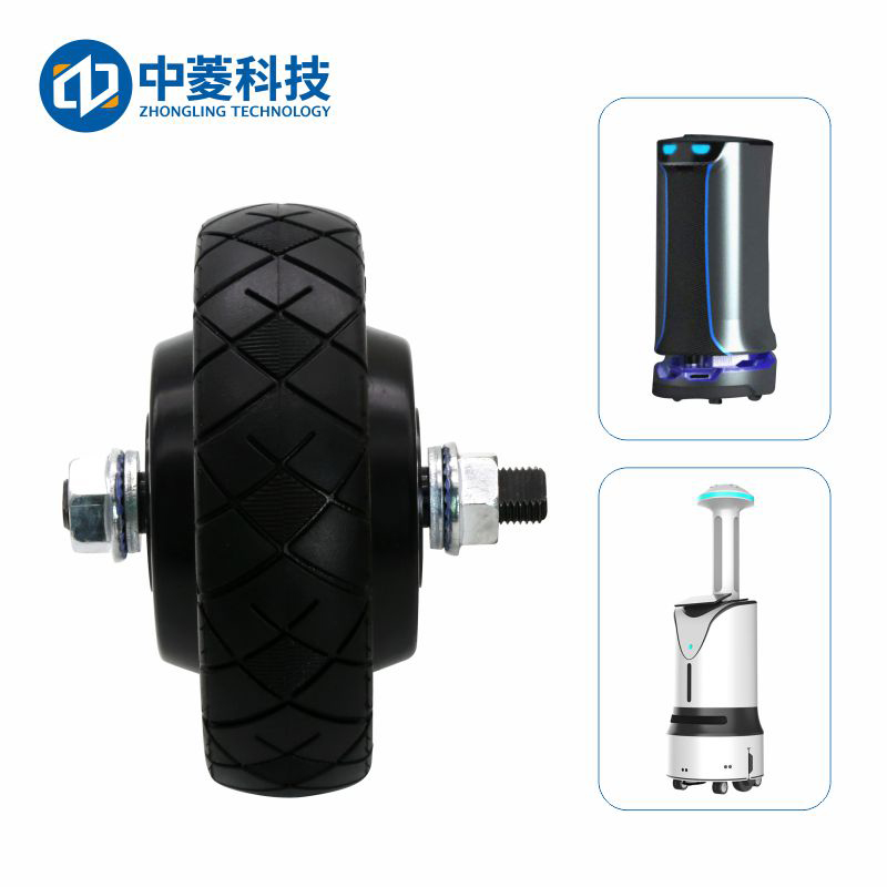 机器人轮毂电机是一种新型结构的轮毂电机,基本组成结构为:定子+编码器+轴+磁铁+钢圈+盖子+轮胎。
