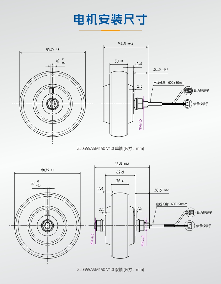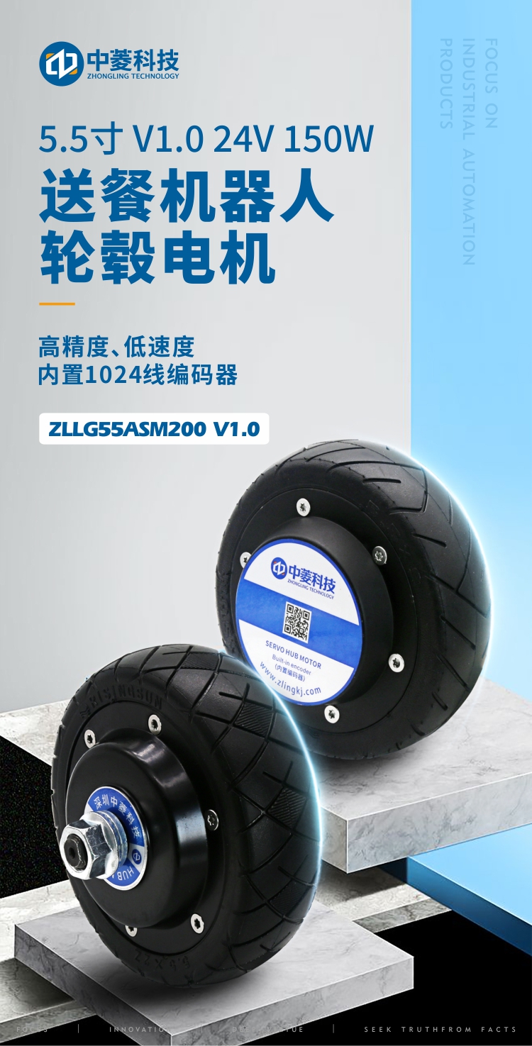 中菱科技ZLLG55ASM150 V1.0 5.5寸内置编码器机器人轮毂伺服双轴电机驱动器直流电