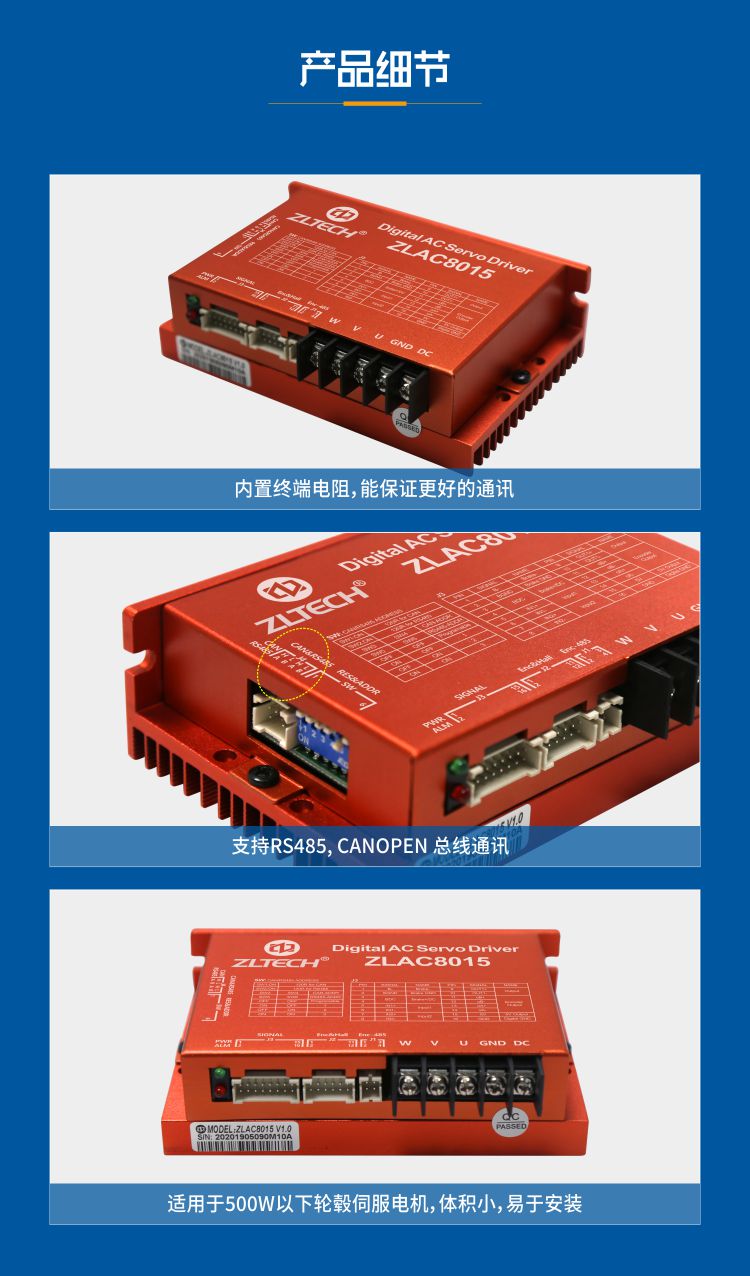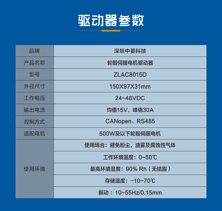 ZLAC8015为高性能数字式伺服轮毂电机驱动器,系统结构简单,集成度高,增加了总线通讯及单轴控制器功能。
