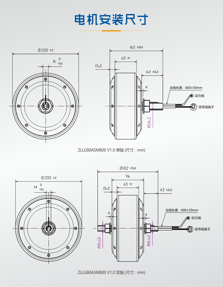• 中菱科技ZLLG80ASM800 V1.0 8寸大功率轮毂伺服电机低速大扭矩AGV小车机器人
