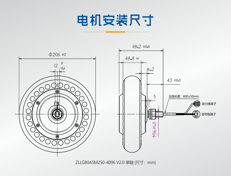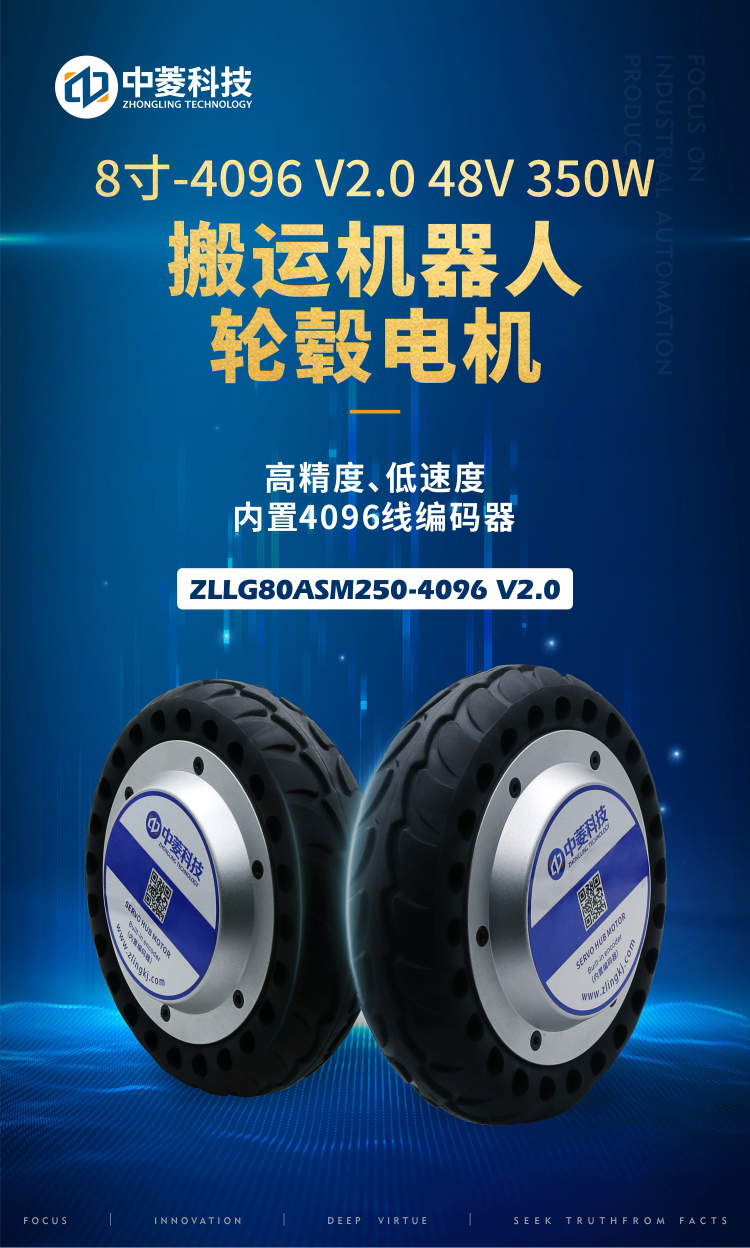 中菱科技ZLLG80ASM250-4096 V2.0 8寸4096线伺服轮毂电机驱动器24V直流电机器人AGV编码器