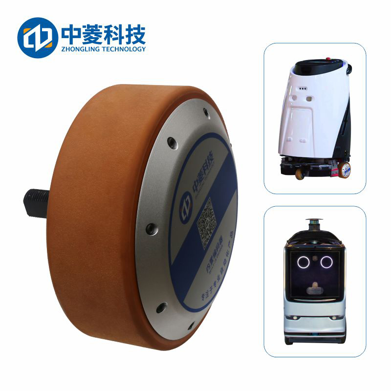 机器人轮毂电机是一种新型结构的轮毂电机,基本组成结构为:定子+编码器+轴+磁铁+钢圈+盖子+轮胎。